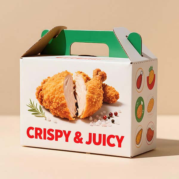 A self-locking carrier with a distinctive triangular top handle. Ideal for food, gifts, or retail items. Sturdy, easy to carry, and convenient for takeaway or presentation. Customizable in size and design to suit your brand or occasion.